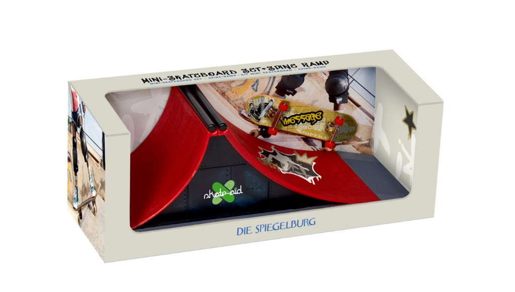 Dieses Mini-Skateboard Set von Die Spiegelburg bringt das authentische Skate-Erlebnis ins Kinderzimmer! Mit der kleinen Rampe aus robustem Kunststoff können Nachwuchs-Skater die coolsten Tricks üben – perfekt für Finger-Skateboard-Fans und für ein spielerisches Training der Fingerfertigkeit. Das Set enthält nicht nur das Mini-Skateboard, sondern auch alle wichtigen Ersatzteile und Werkzeug, um es jederzeit schnell zu reparieren. Mit kompakten Maßen von ca. 23,5 x 9 x 10 cm passt es ideal auf jeden Tisch und bietet jede Menge
